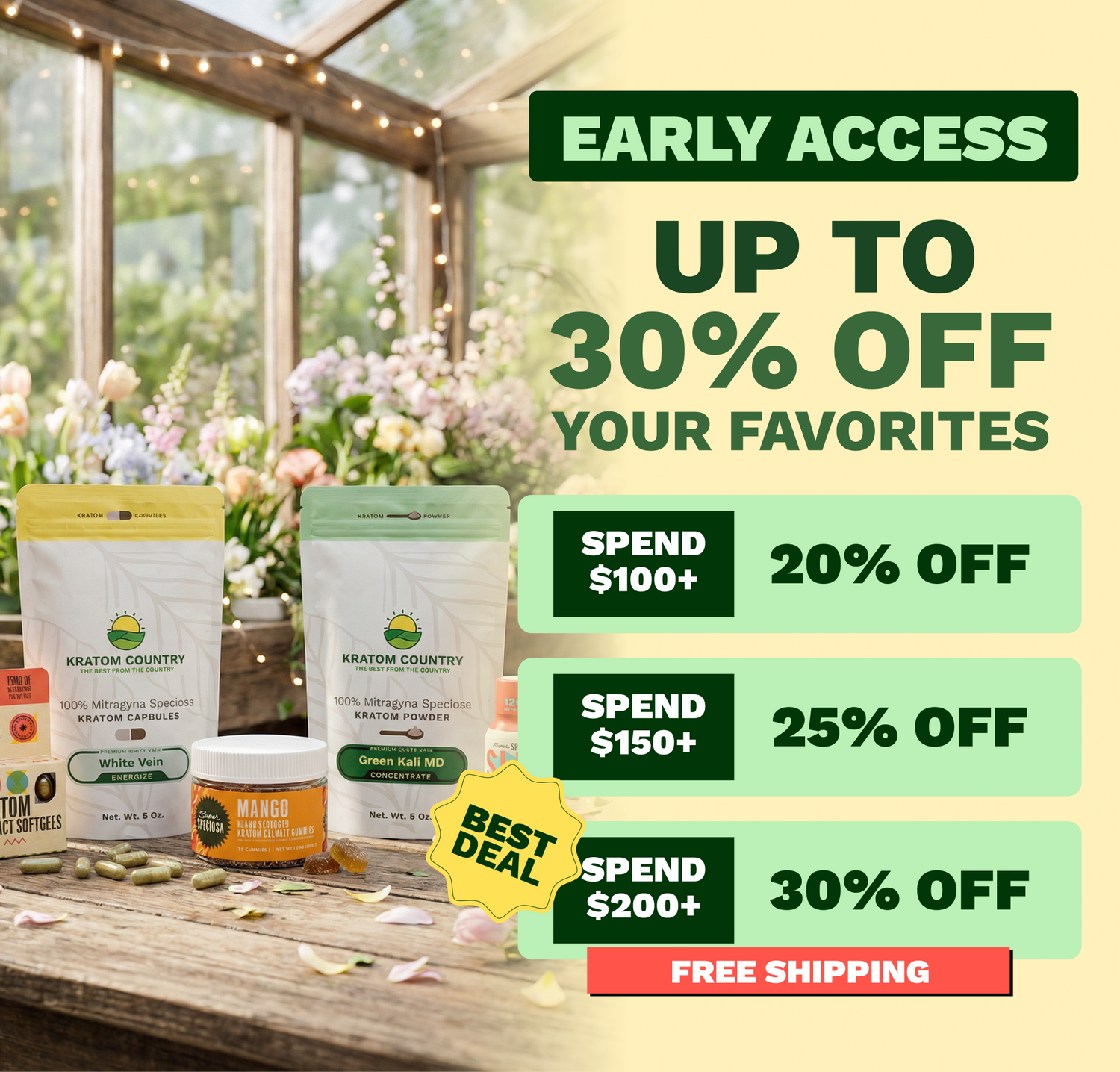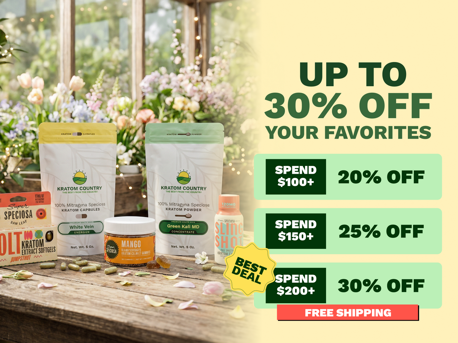 Buy premium kratom online from Kratom Country, your trusted source for high-quality, lab-tested kratom products. We offer a wide selection of kratom powder, capsules, extracts, and more. All of our kratom products are carefully sourced and tested for purity and consistency. Enjoy free shipping and fast delivery on orders $125+, backed by over 15 years of experience serving kratom customers nationwide.